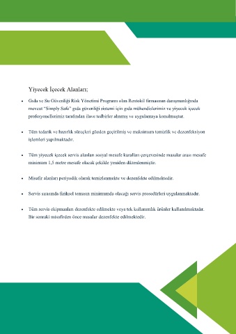 Tüm servis ekipmanları dezenfekte edilmekte veya tek kullanımlık ürünler kullanılmaktadır.