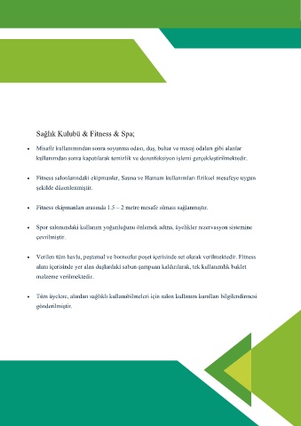 Misafir kullanımından sonra soyunma odası, duş, buhar ve masaj odaları gibi alanlar