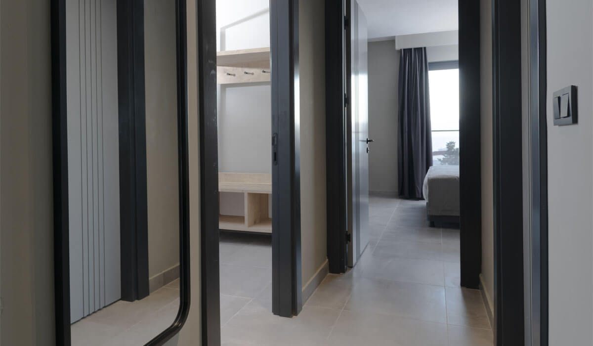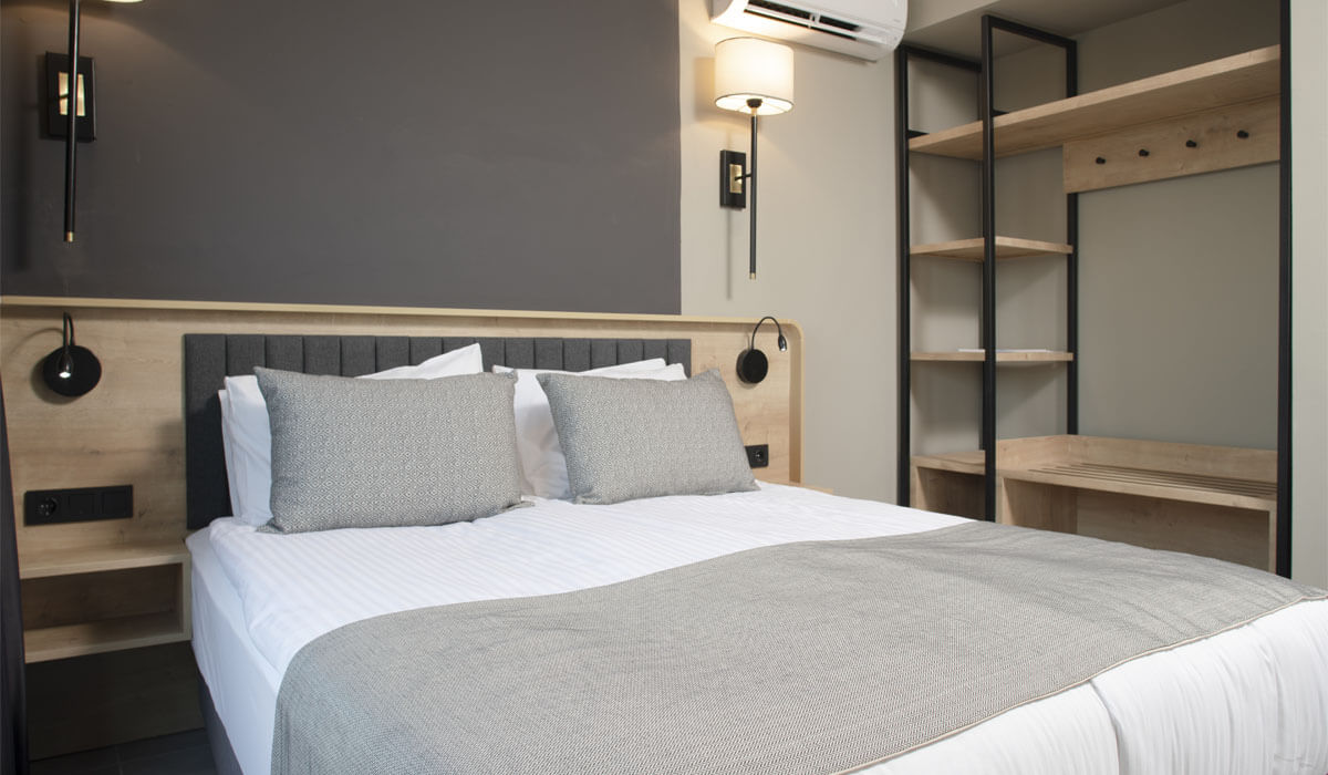 Our rooms are 50 m², comfortable single and double beds, safe box, water heater, telephone, tea-coffee machine, smart TV (for using Youtube etc. applications) hair dryer, make-up mirror, air conditioning in all rooms, kitchen(some rooms), kitchen equipment(some rooms), sitting group, shower, wc, mini fridge, shampoo, shower gel, conditioner. The floors of our rooms are covered with elegant ceramics. Wifi is available free of charge in the rooms and public areas. In addition, thanks to the wifi interface we use in our facility with your smart phones, you can contact the guest representative about all your requests and requests or have your orders come to your room via your phone. All rooms have a balcony