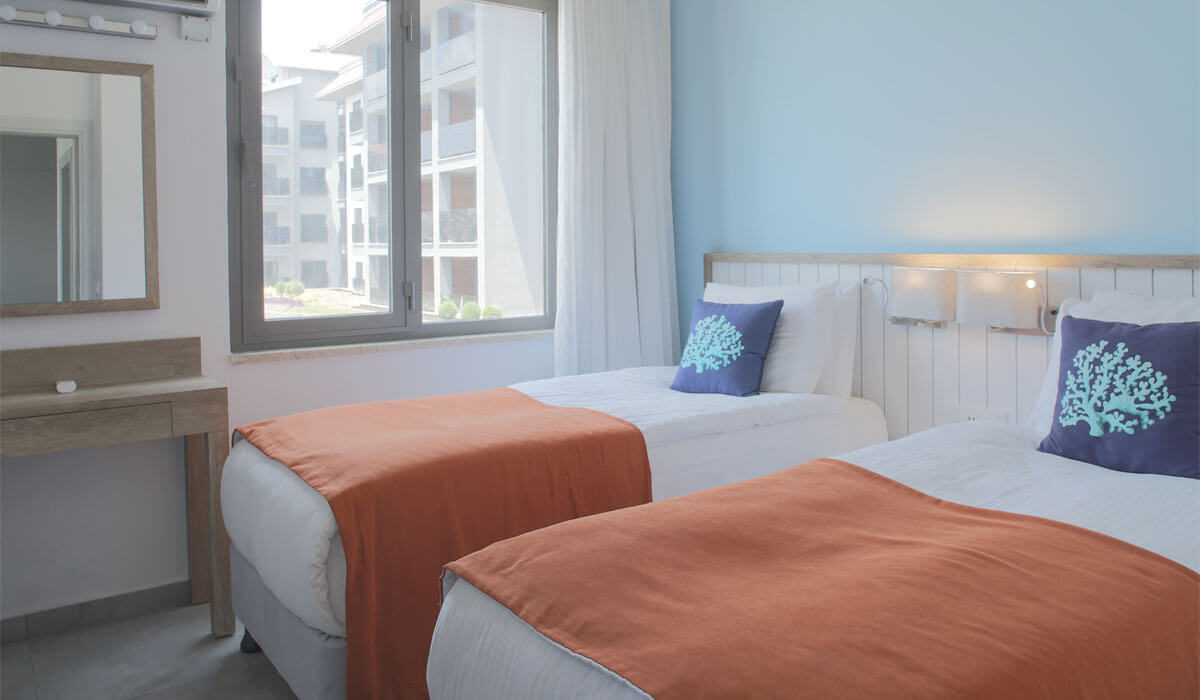 All details have been considered for the comfort of families with children in the two bedroom rooms.